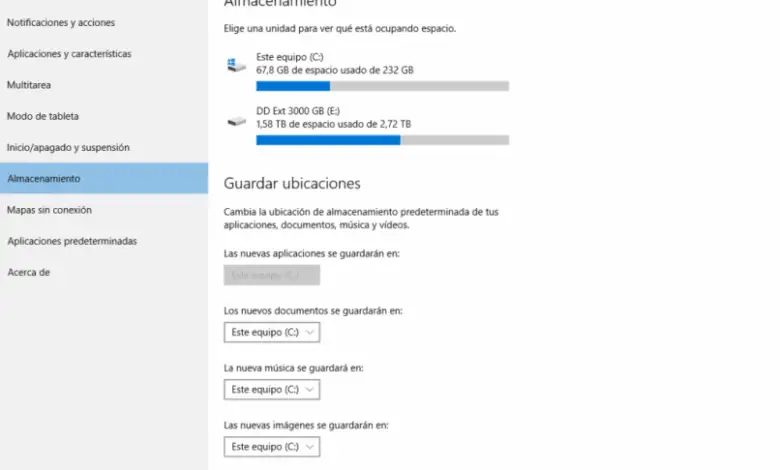 Sur le côté droit, les différentes unités du disque dur de notre PC sont présentées. Ainsi que tout autre périphérique de stockage connecté, tel que des disques externes ou une clé USB. La capacité totale de notre disque dur est obtenue en additionnant la taille totale de toutes les pièces.