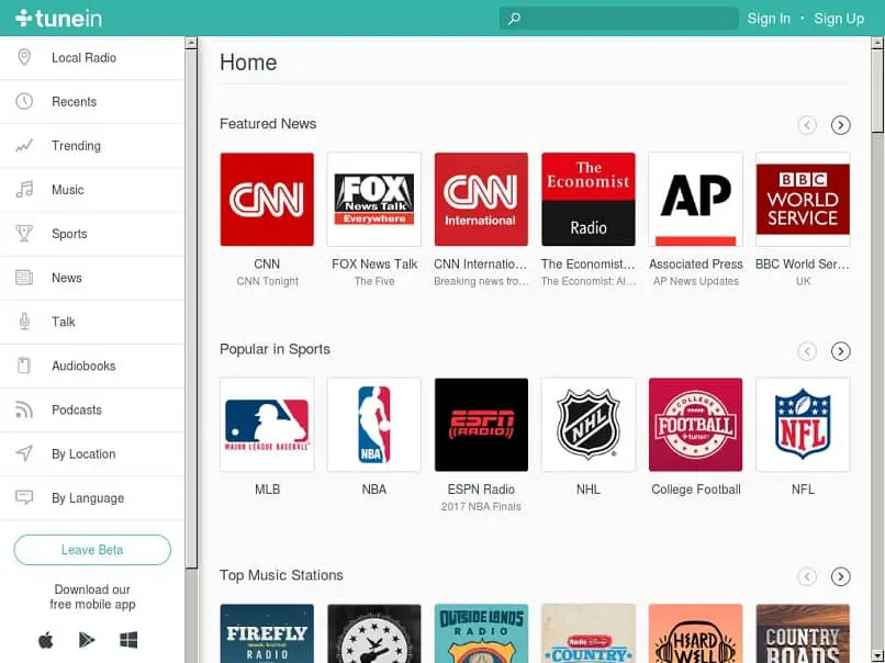 Avec TuneIn, vous serez en mesure d’être au courant de sujets tels que la radio locale , les tendances, la musique, le sport, les nouvelles, les livres audio et le podcast; qui, en fait, font partie des catégories présentes sur ce site.