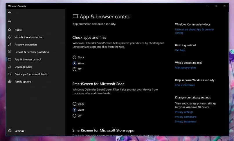 Vous pouvez aller explorer le reste du menu. De cette manière, vous configurerez le SmartScreen à votre guise , en bloquant les applications ou les téléchargements que Windows considère comme dangereux. Ne fermez pas la fenêtre. Depuis, si vous souhaitez réactiver le SmartScreen, il vous suffit de cliquer à nouveau sur «SmartScreen for Miscrosoft Edge».