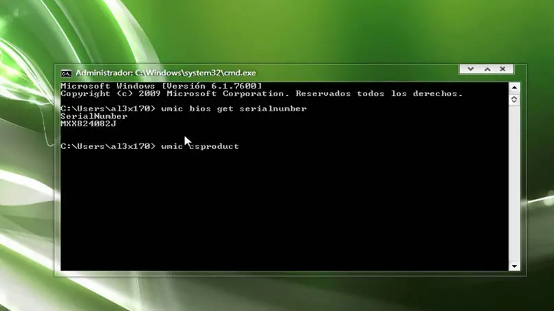 Dans la fenêtre avec un fond noir qui s’affiche, nous devons écrire l’une des commandes suivantes: wmic bios get serialnumber – wmic csproduct get identifiernumber