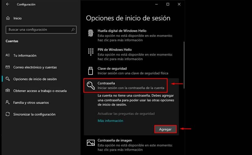 - Une fois sur place, différentes alternatives apparaissent, pour protéger votre compte, dans ce cas, sélectionnez «Mot de passe»