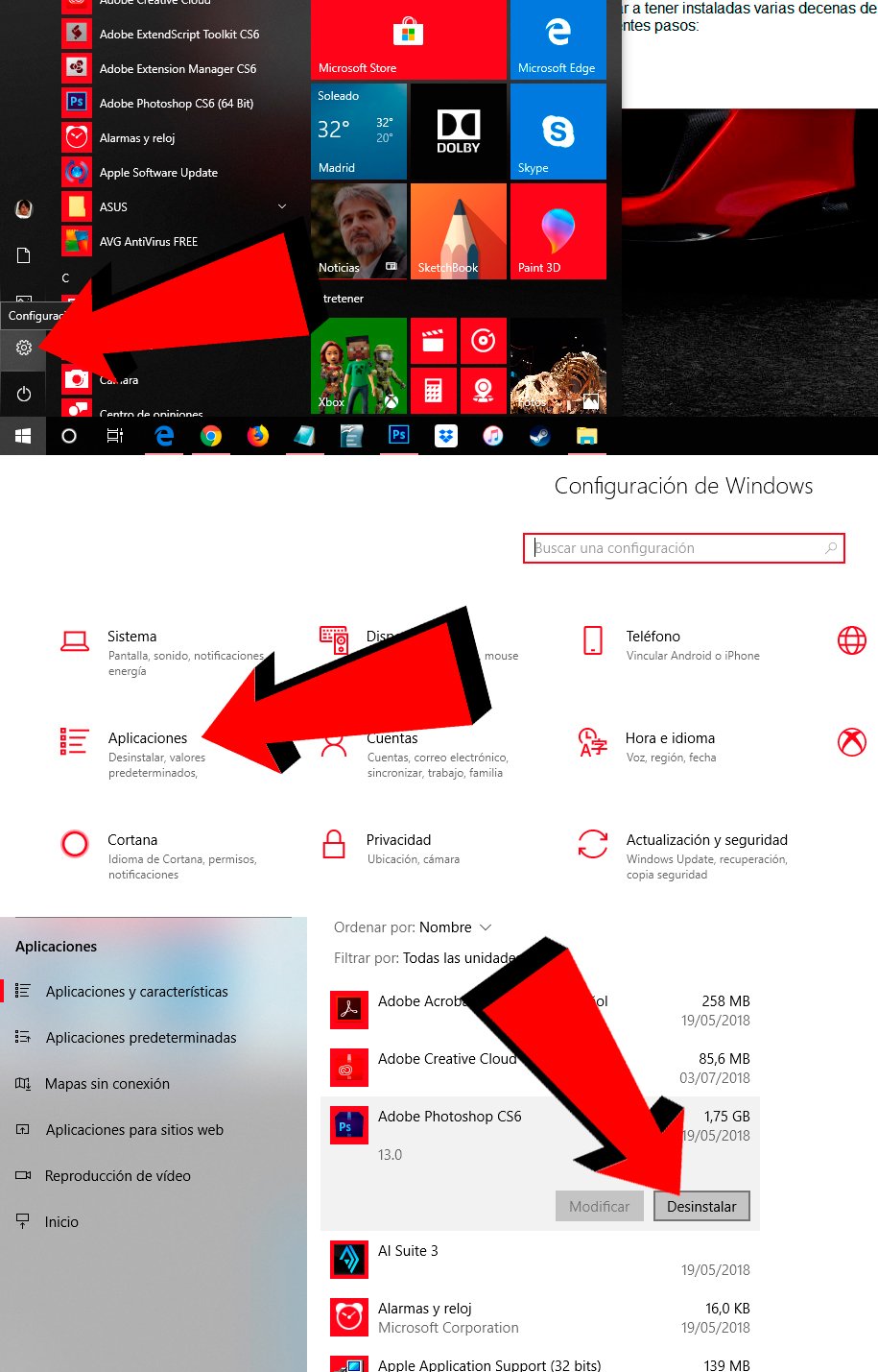 La première chose que nous apprendrons est de désinstaller un jeu vidéo ou un programme sous Windows 10 ; Pour ce faire, suivez les étapes suivantes: